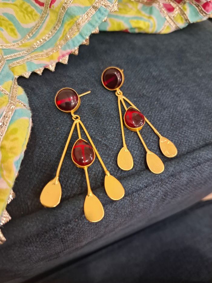 Description: Indo-western contemporary earrings with studded stones. The earrings are suitable for both Indian and western look.