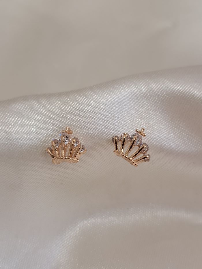 Gold-plated demi-fine small stud earrings studded with dainty crystals.