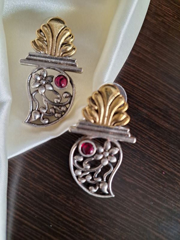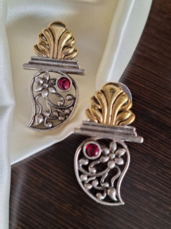 Description: Pink paisley studs Dual tone stud earrings in paisley and ganesha pattern