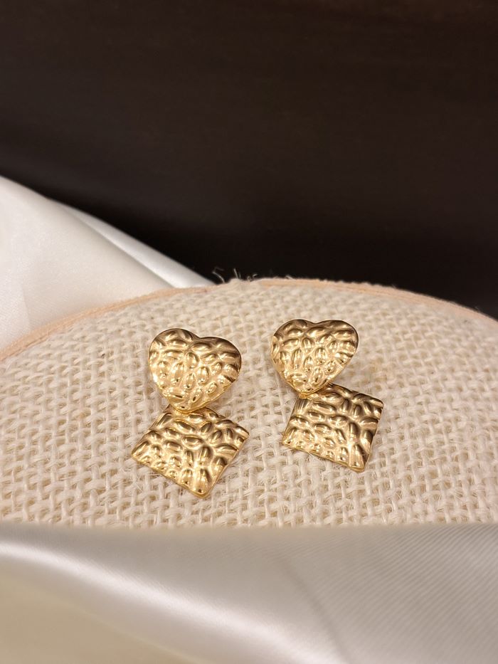 Anti-tarnish drop earrings in hammered pattern and heart design that can be styled both as an office and party wear.