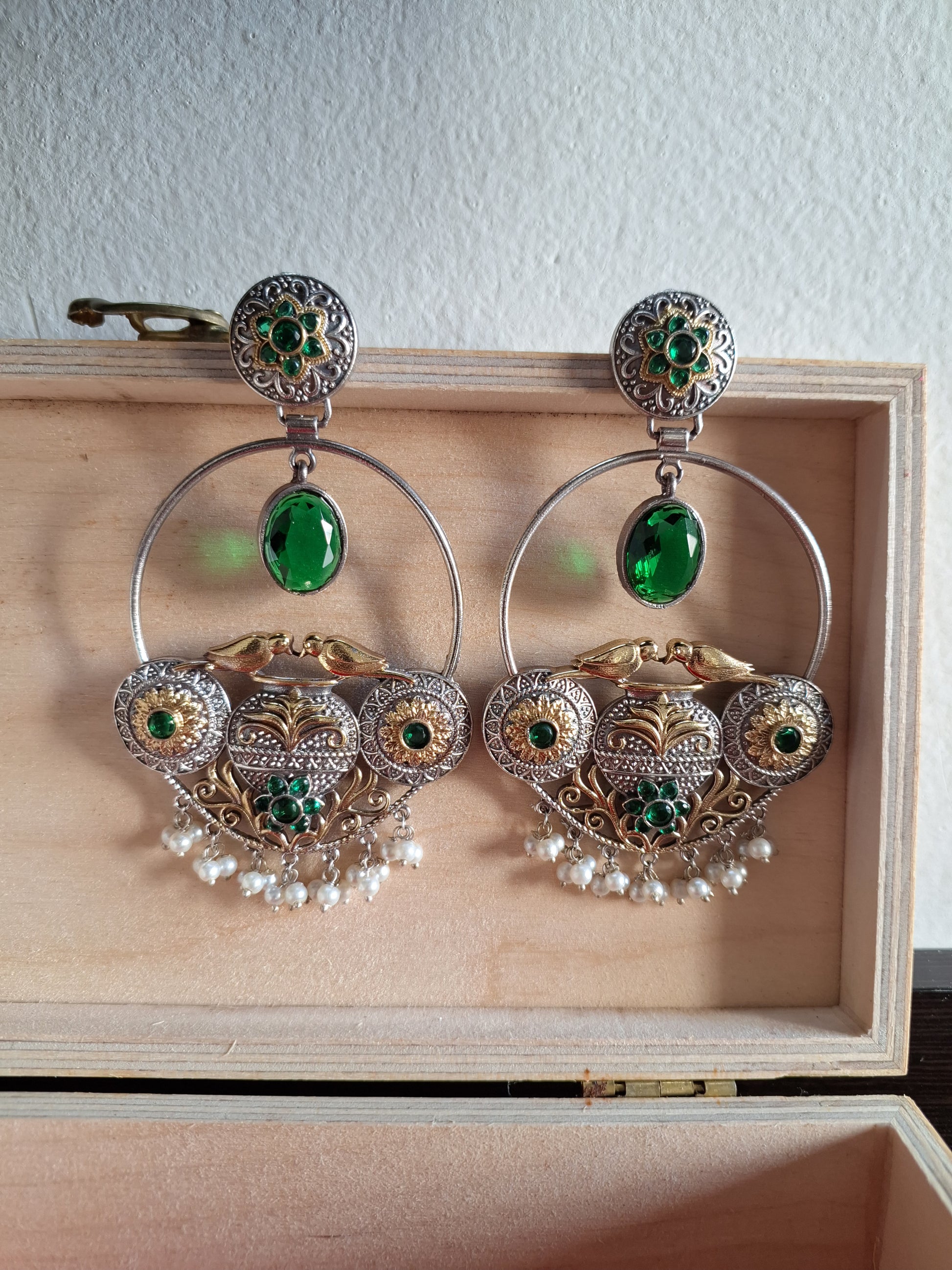 Madhurima dual tone brass hooplike dangler earrings - Emerald Green
