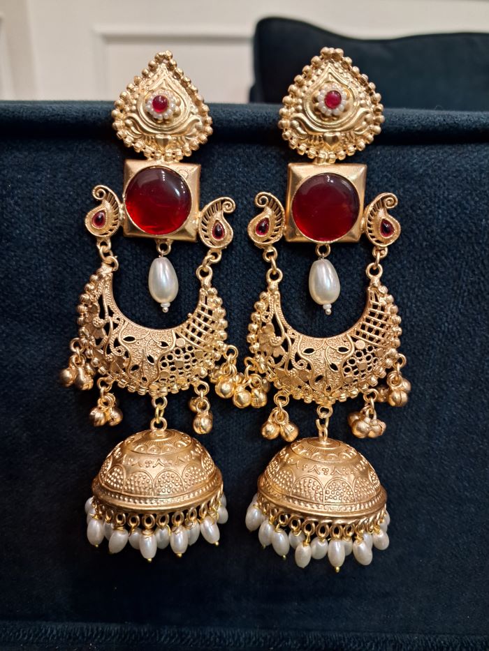 Maheep Red Chandbali Jhumkas