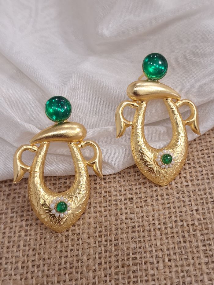 Light-weight gold-plated brass earrings with kundan, pearls and stones.
