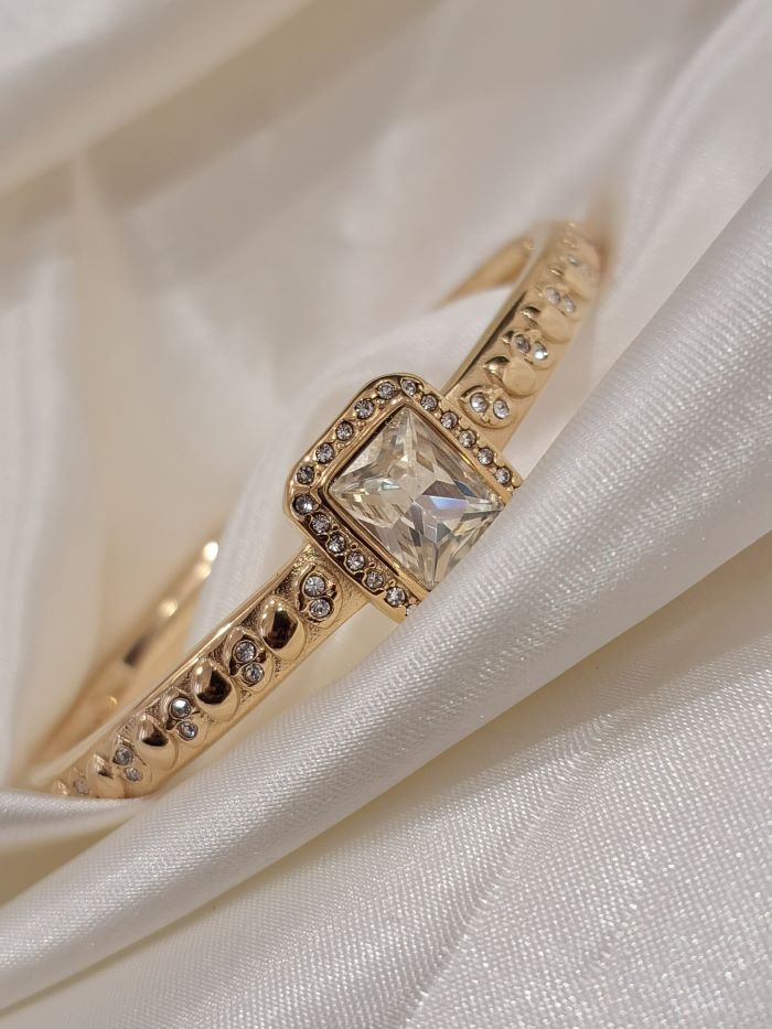 Gold-plated stainless steel openable bracelet with AD stones.