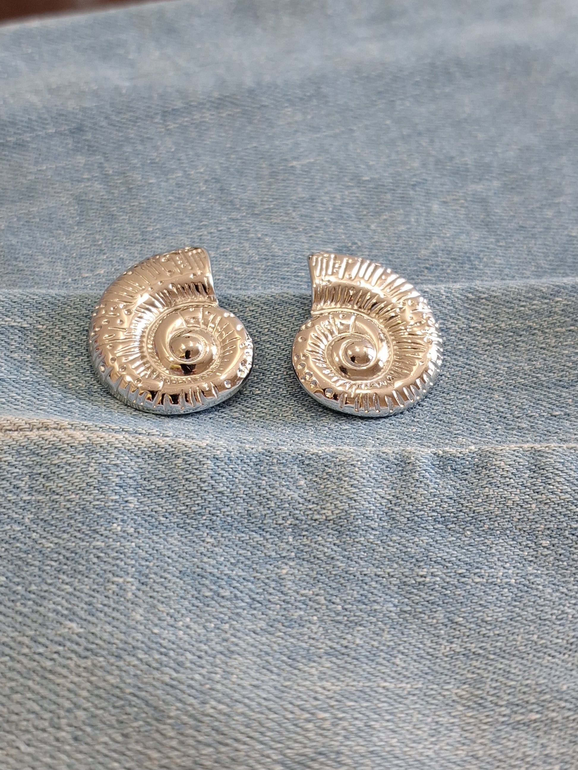Silver-plated anti-tarnish stud earrings in snail design that is perfect for a beach vacation.